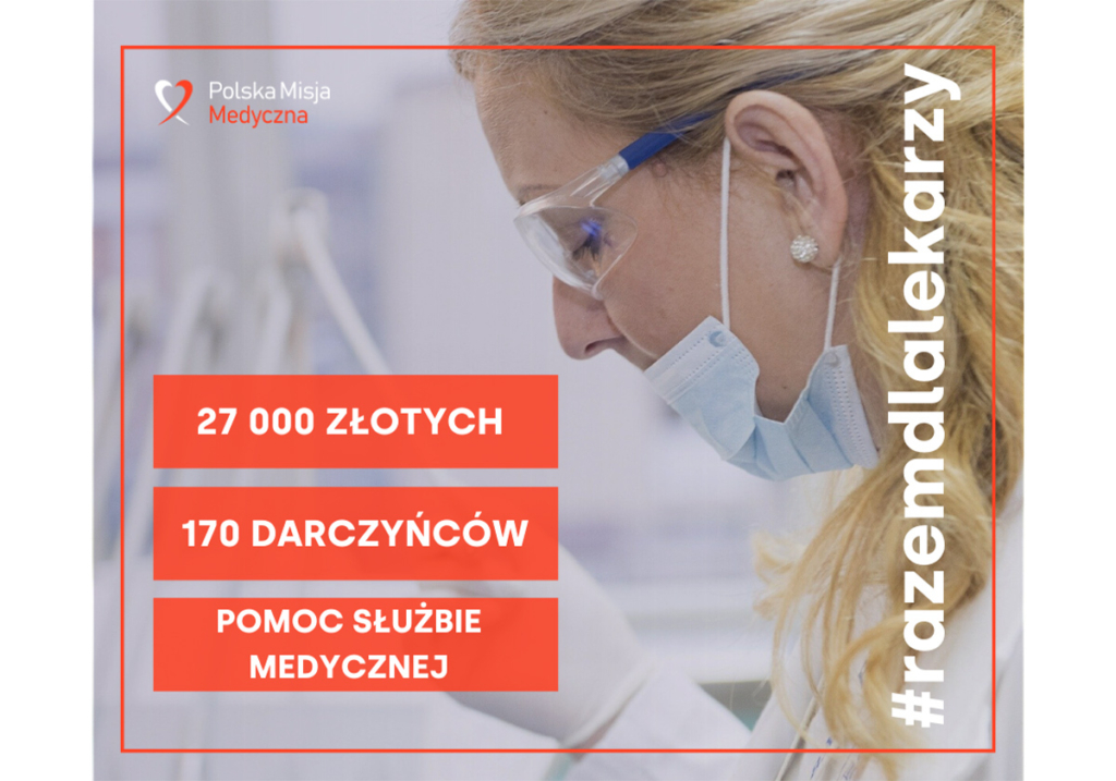 200 darczyńców i niemalże 40 tysięcy złotych to podsumowanie akcji specjalnej na rzecz polskiego personelu medycznego przygotowanej przez Polską Misję Medyczną. Pieniądze i dary rzeczowe trafiły do 5 jednostek medycznych: Szpitala Uniwersyteckiego i Szpitala im. S. Żeromskiego w Krakowie, Szpitala Specjalistycznego im. E. Biernackiego w Mielcu, ZOL „Pasternik” w Modlniczce, Szpitala Tworkowskiego oraz Instytutu Matki i Dziecka