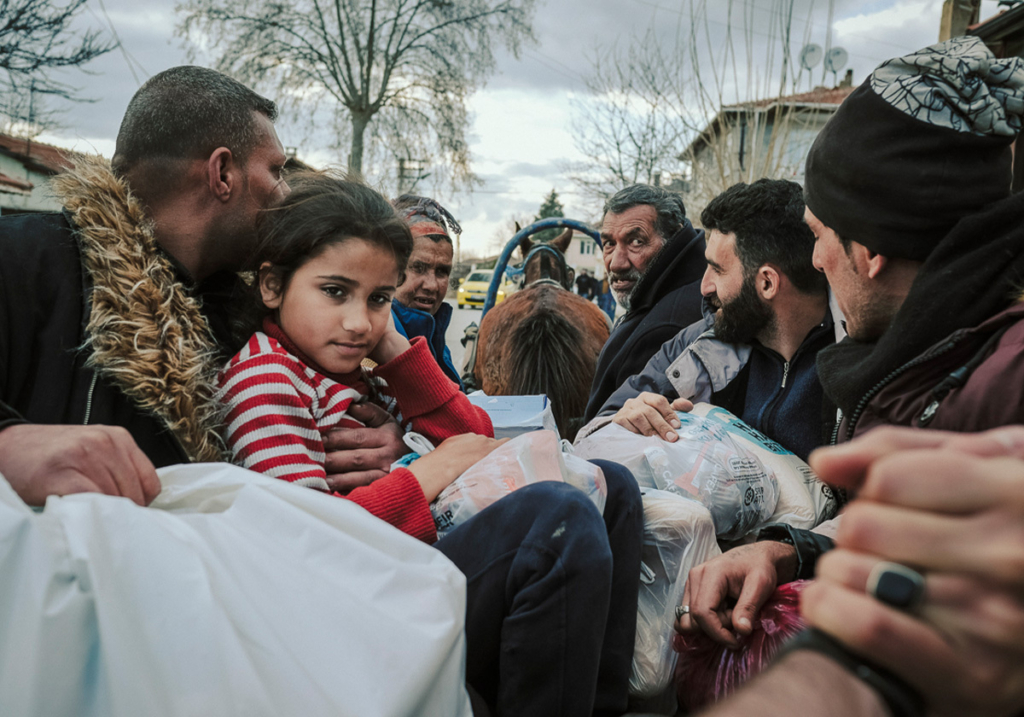 20 kwietnia. Przeglądam zdjęcia. Ten kadr z fotografii pamiętam bardzo dokładnie. Mała uchodźczyni z Syrii, Mariam, z ojcem Alim i kolegami ojca w drodze powrotnej z zakupów z miejscowości przygranicznej Karaagac. Żony i pozostali członkowie rodzin czekają w obozie, bo takie wyjście jest bardzo męczące – kilkugodzinne oczekiwanie na wyjście i kilkukilometrowy marsz. Sam (po prawej, trzymający mnie za rękę, bym nie spadł z wozu) stracił w ojczyźnie 2 braci i dziecko, po tym, jak jego dom został ostrzelany, a on sam doznał poważnego urazu klatki piersiowej.
